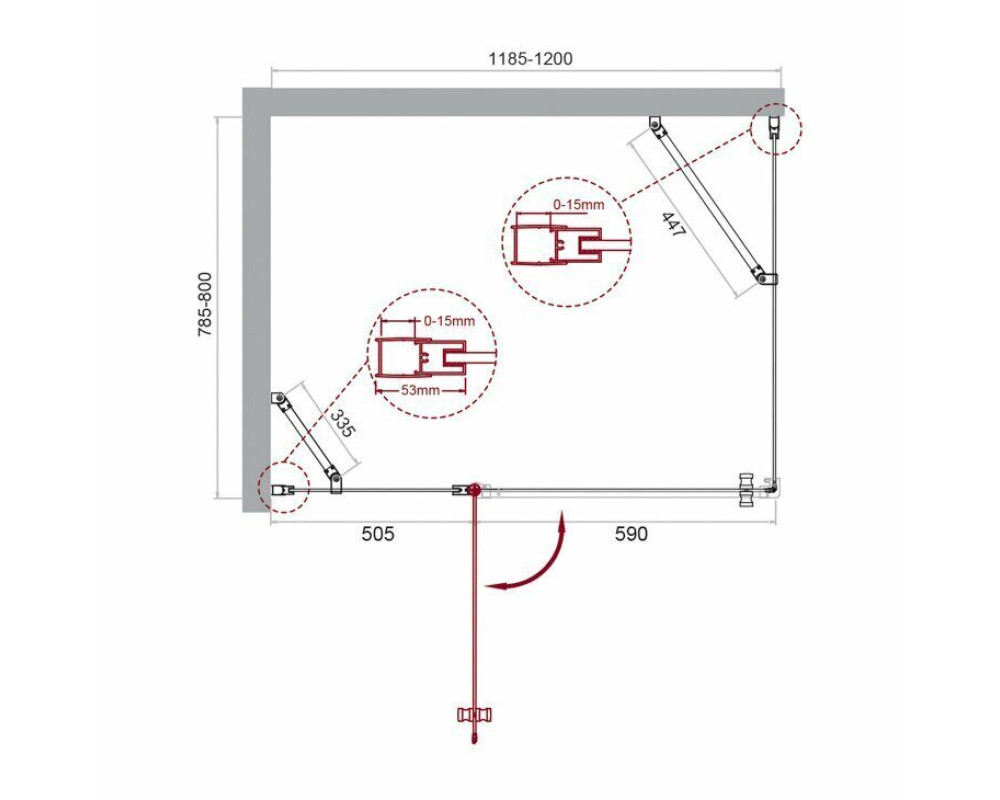 Габариты с регулировками, мм: (1185-1200)x(785-800)x1950