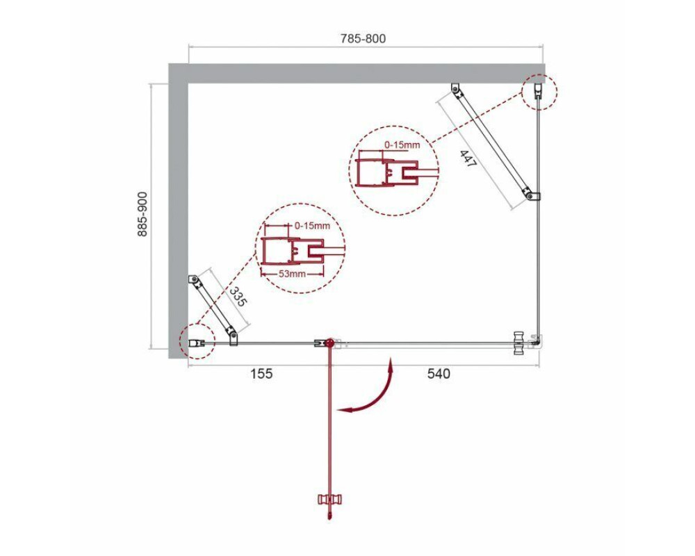 Габариты с регулировками, мм: (785-800)x(885-900)x1950