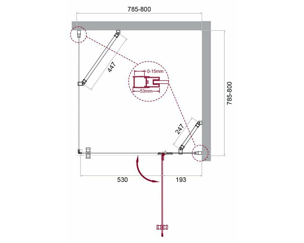 Габариты с регулировками, мм: (785-800)x(785-800)x1950
