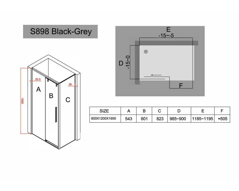 Душевой уголок Black&White S898 Black-Grey 90х120х195