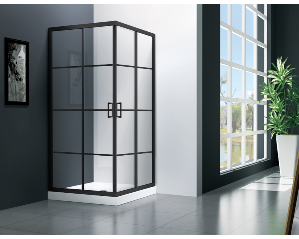 Душевой уголок Veconi Rovigo 100x100x195 стекло с рисунком профиль черный RV09-100-01-C7