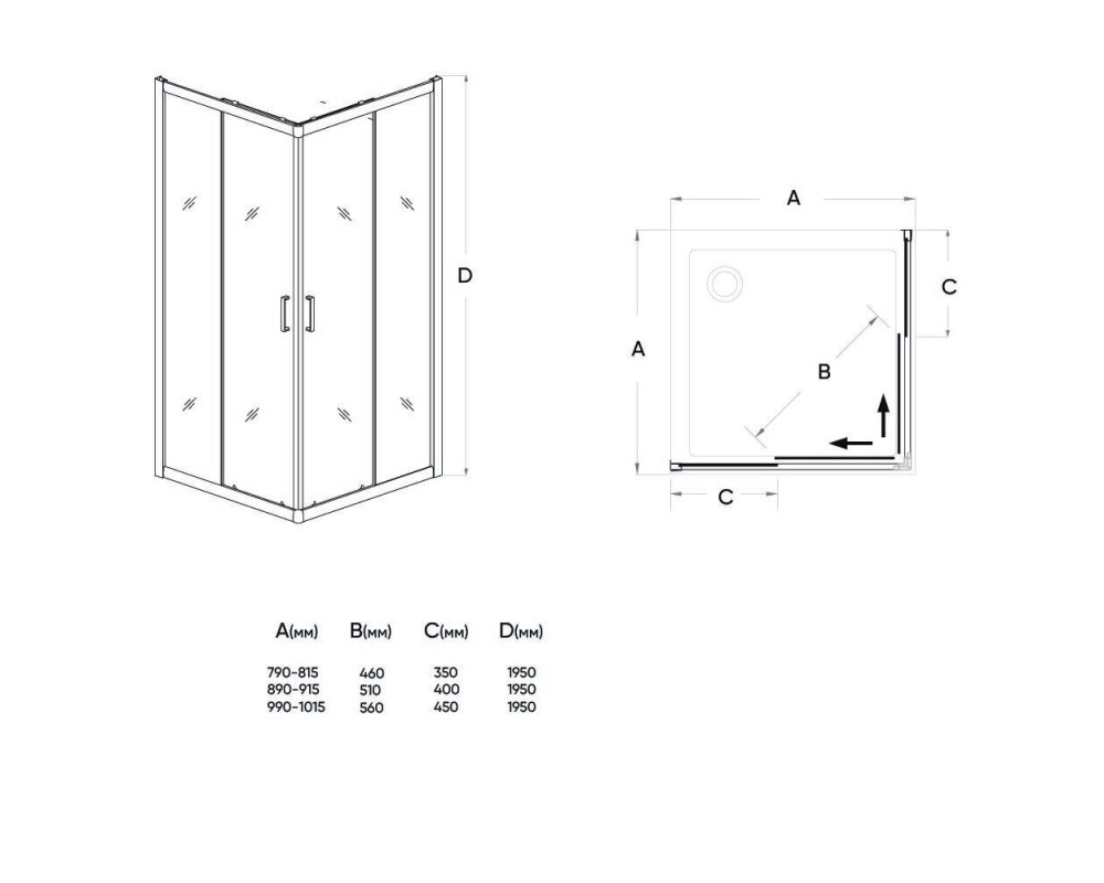 Душевой уголок Veconi Rovigo 80x80x195 стекло прозрачное профиль хром RV11-80K-01-19C1