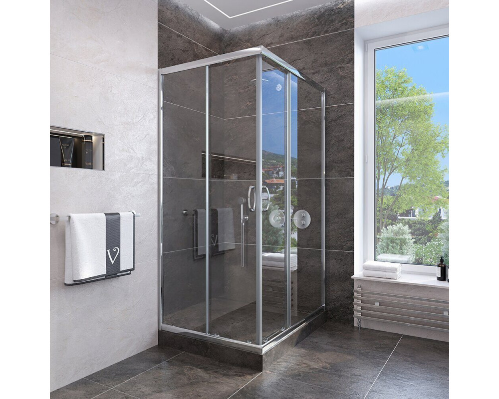 Душевой уголок Veconi Rovigo 90x90x185 стекло прозрачное профиль хром RV113-90-01-C4