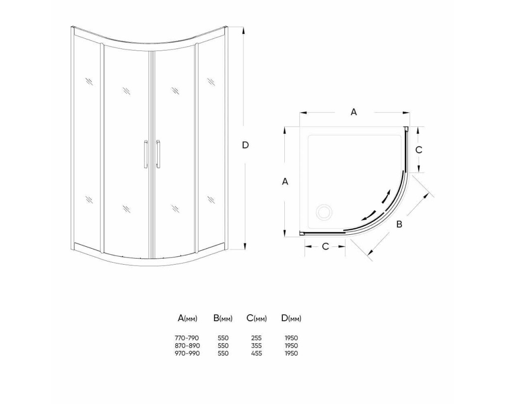 Душевой уголок Veconi Rovigo 90x90x195 стекло прозрачное профиль черный RV04-90PL-01-19C1
