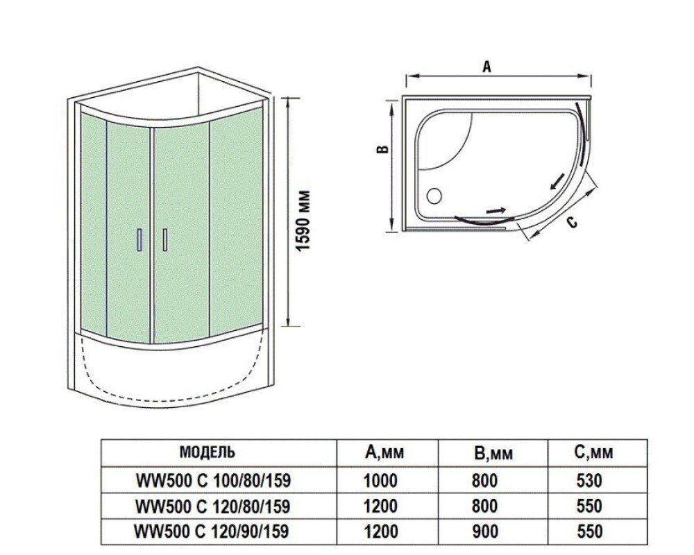 Душевой уголок WeltWasser WW500 C 100/80/159 L/R